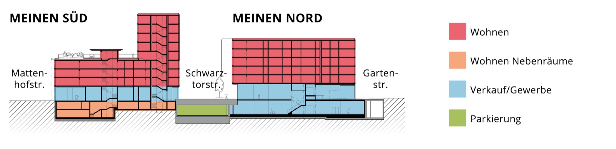 Seit 2011 ist die Pensionskasse der Ärzte und Tierärzte (PAT-BVG) Eigentümerin des Meinen-Areals. Die von ihr geplante Überbauung Meinen-Areal ermöglicht Wohnen an bestens erschlossener Lage und schafft mit Verkaufs- und Dienstleistungsflächen ein Zentrum für das Mattenhofquartier. Zudem werden attraktive Grünflächen rund um das Areal einen Beitrag zum Quartierklima und zu einer grüneren Stadt leisten.